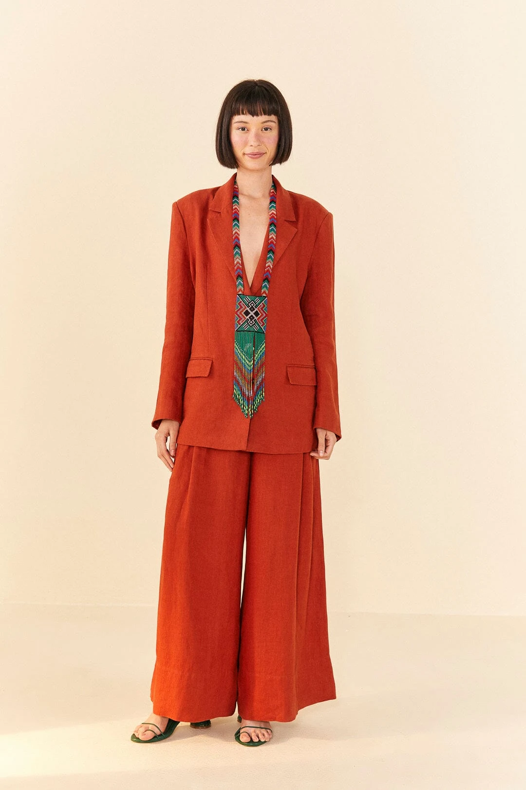 We can definitely call it the boldest classic: the Brown Blazer is here to be a timeless pick in your wardrobe, whatever the weather, no matter the occasion. It has a cozy fit, long sleeves to deal with the breeze, and versatile buttons to style it open or closed. From printed and solid bottoms to fresh shoes, your new fave top matches them all (but the Brown Wide Leg Pants are the coolest match!) <3