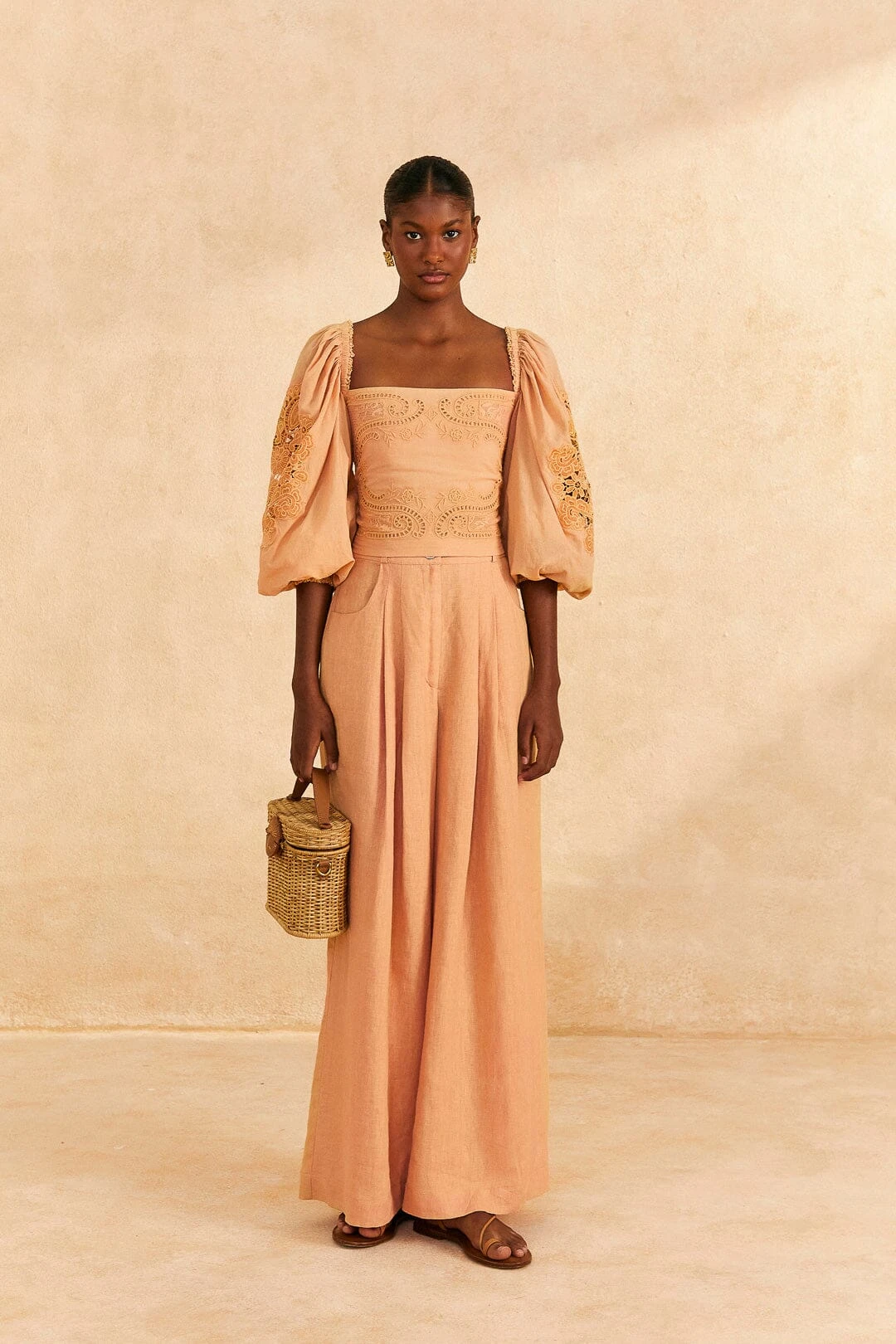 - Long puff sleeves with elastic at shoulders