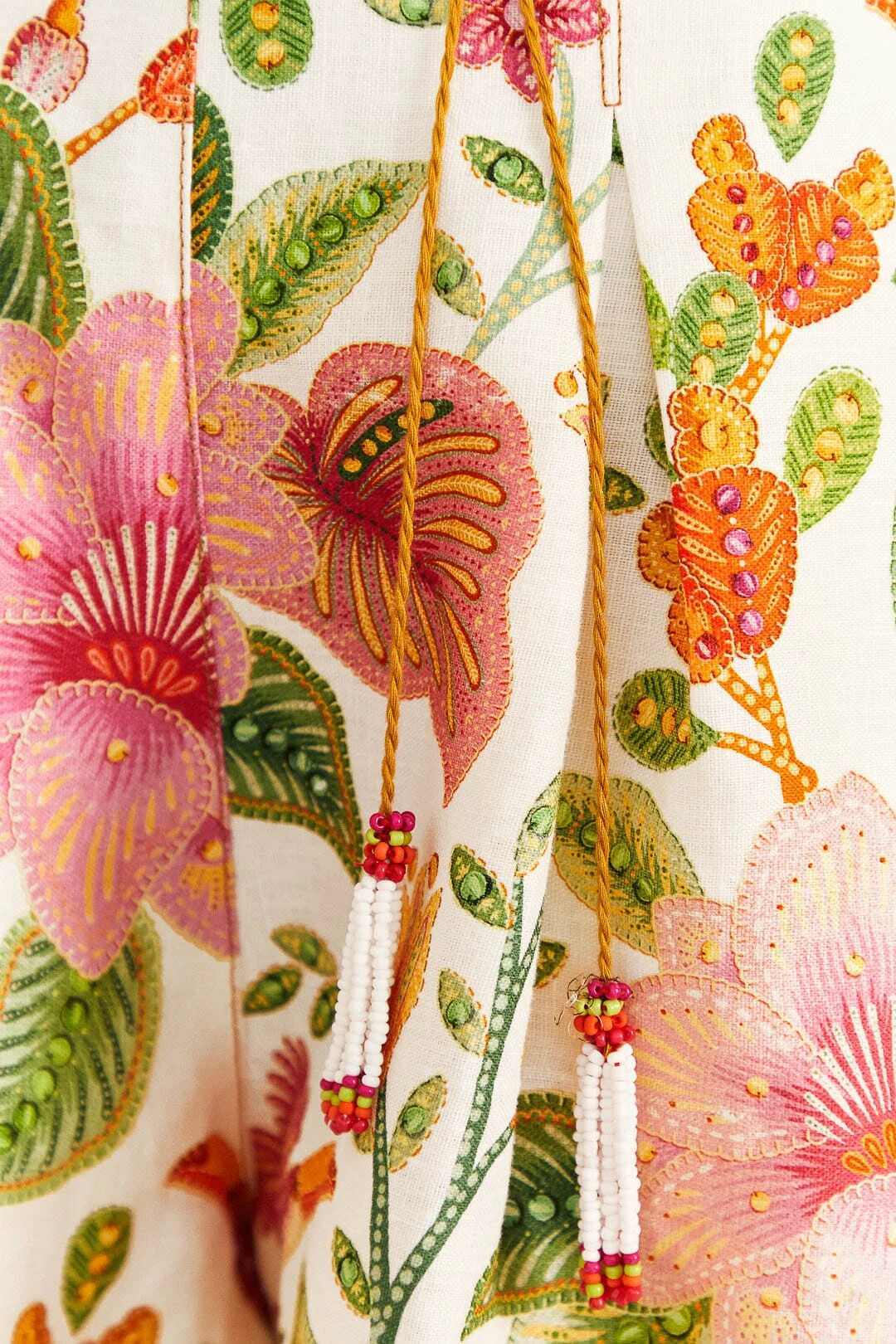 This is what we call an effortless Summer style. The Off-White Macaw Bloom Shorts are the fresh match all your lonely tops were dreaming about with its one-of-a-kind print, a belt with cute beaded tassels, pockets, and the coolest length to show some legs and bold shoes. So invite your tops, from blouses to crop ones, and get ready to dress in happiness in every place, every wear.