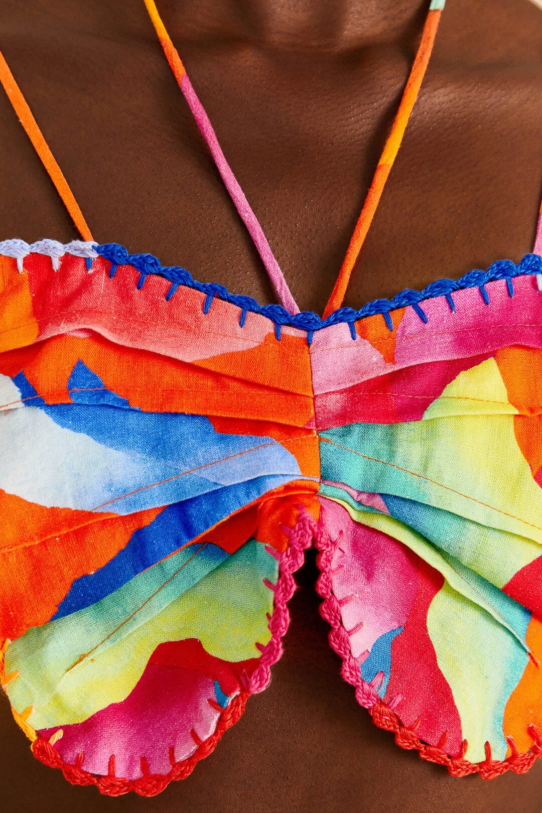 When Summer calls for tropical, breezy faves, you can answer in the Red Ombre Chita Top. It features a butterfly-shaped applique and beaded tassels in its far-from-ordinary silhouette that hugs you without losing comfort. Your new top matches the Red Ombre Chita Midi Skirt, your bold FARM Rio Shoes – from sandals to sneakers to Havaianas flip-flops – and your accessories to effortlessly walk you through the season on the brightest side!